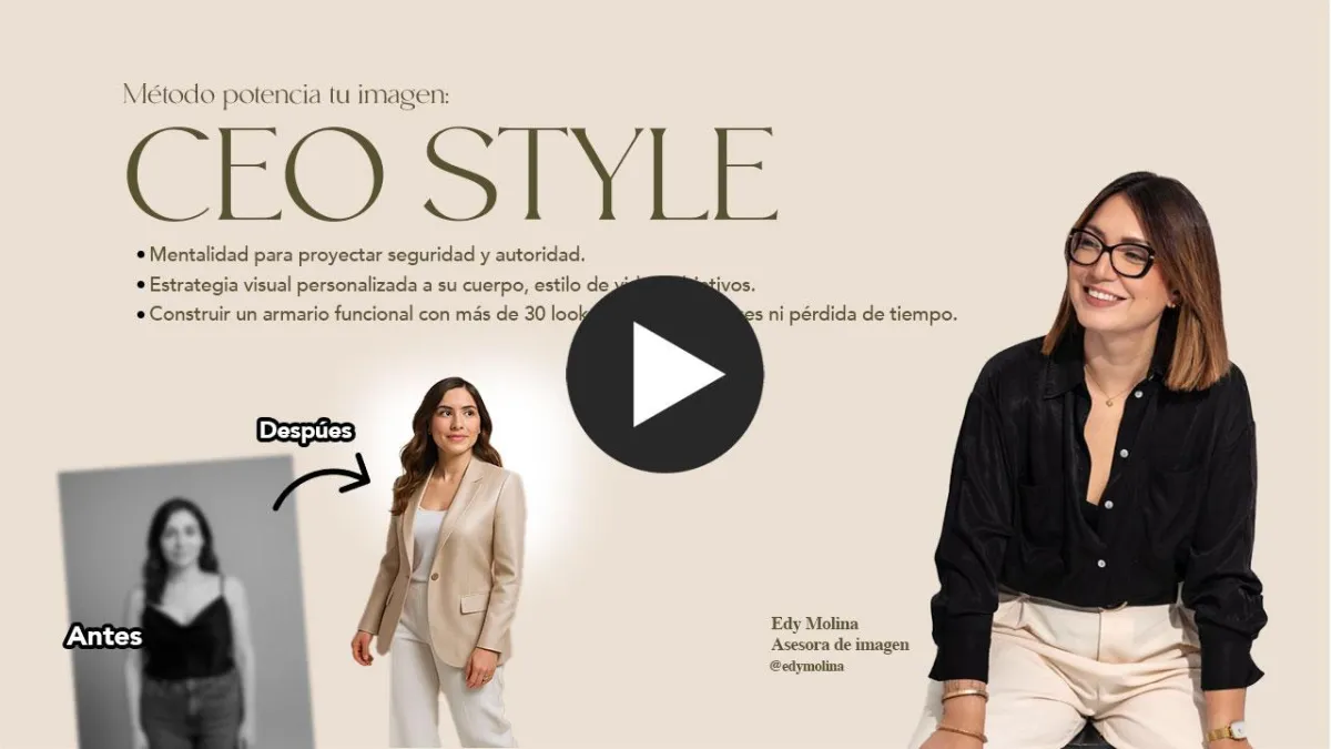 Creadora del método CEO STYLE, un sistema de diseño visual para mujeres empresarias que desean proyectar liderazgo sin perder autenticidad.